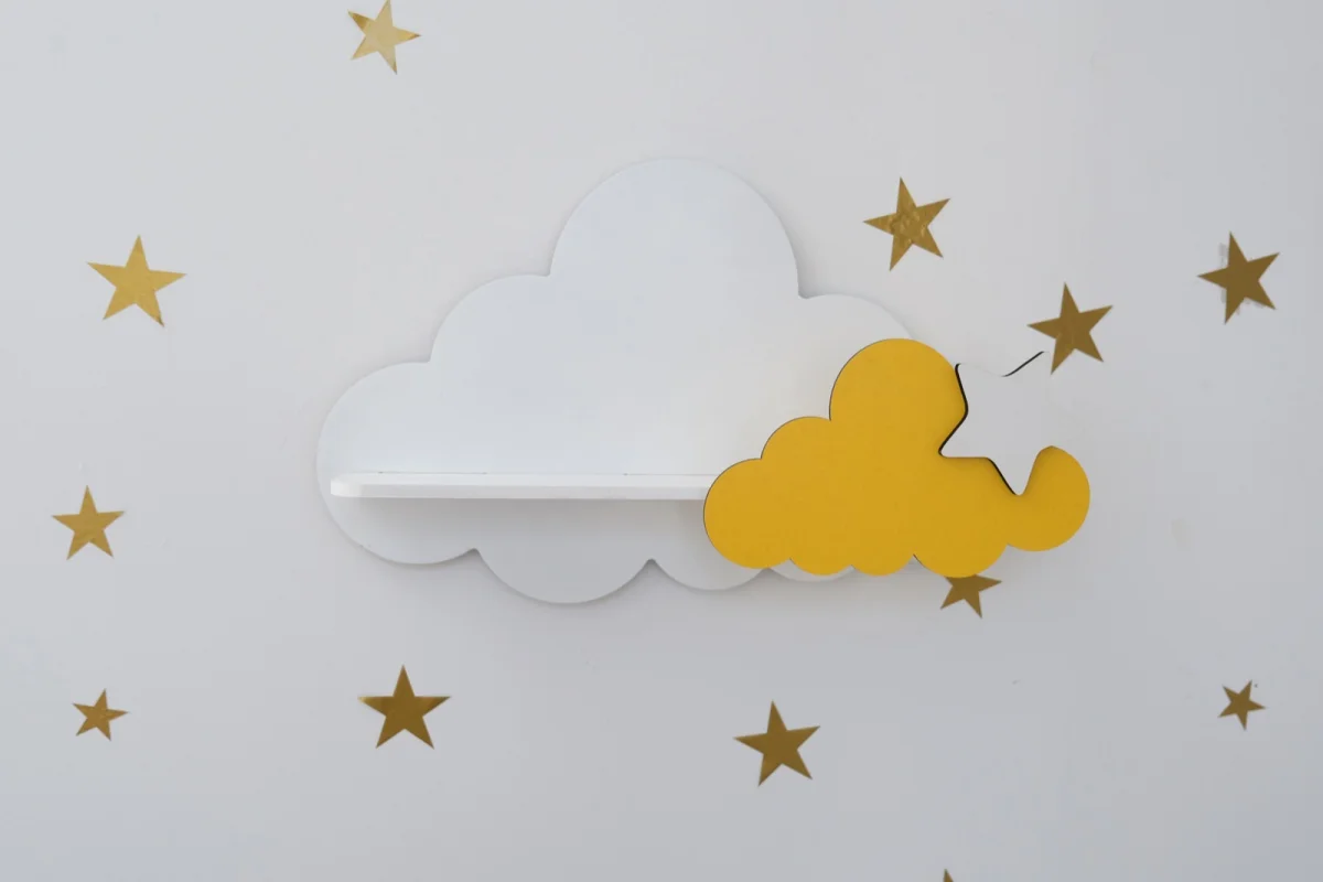 Özel tasarımlı bu bulut formlu ahşap çocuk odası rafı, bebeğinizin depolama alanını bulut gibi kılmak için instababyrooms.com tarafından özenle üretilmiştir. Bebek odası dekorasyon ve çocuk odası aksesuar arayanlar için geniş desen ve renk seçenekleri ile sunulan bu Bulut Raf, odanıza profesyonel bir dekorasyon dokunuşu katar. Bulut formlu ahşap çocuk odası rafı. MDF, 60x35 cm veya 80x45 cm. Taşıma kapasitesi: max 5 kg. Duvara sabitleme vidaları dahil. Kitap ve oyuncak depolamaya ideal. Dijital baskı teknolojisi ile Türkiye'de üretilen bu Bulut Raf; solmaz renkler, çocuk güvenli malzeme ve özel tasarım ile öne çıkar. Bebek odası hediye, çocuk odası dekorasyon ve ev dekorasyon arayanlar için idealdir. instababyrooms.com'da tüm bulut raf modellerini inceleyin.