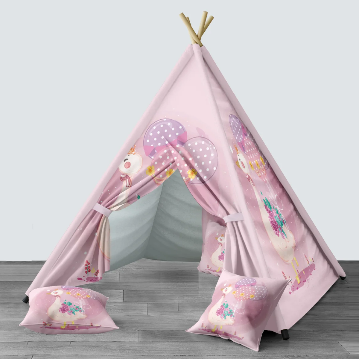 Prenses Kaz temalı Çadır Evi. Pembe baskılı. Kız bebek odası için özel tasarım.