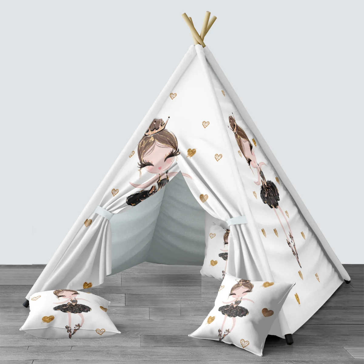 Balerin temalı Çadır Evi. Beyaz baskılı. Kız bebek odası için özel tasarım.