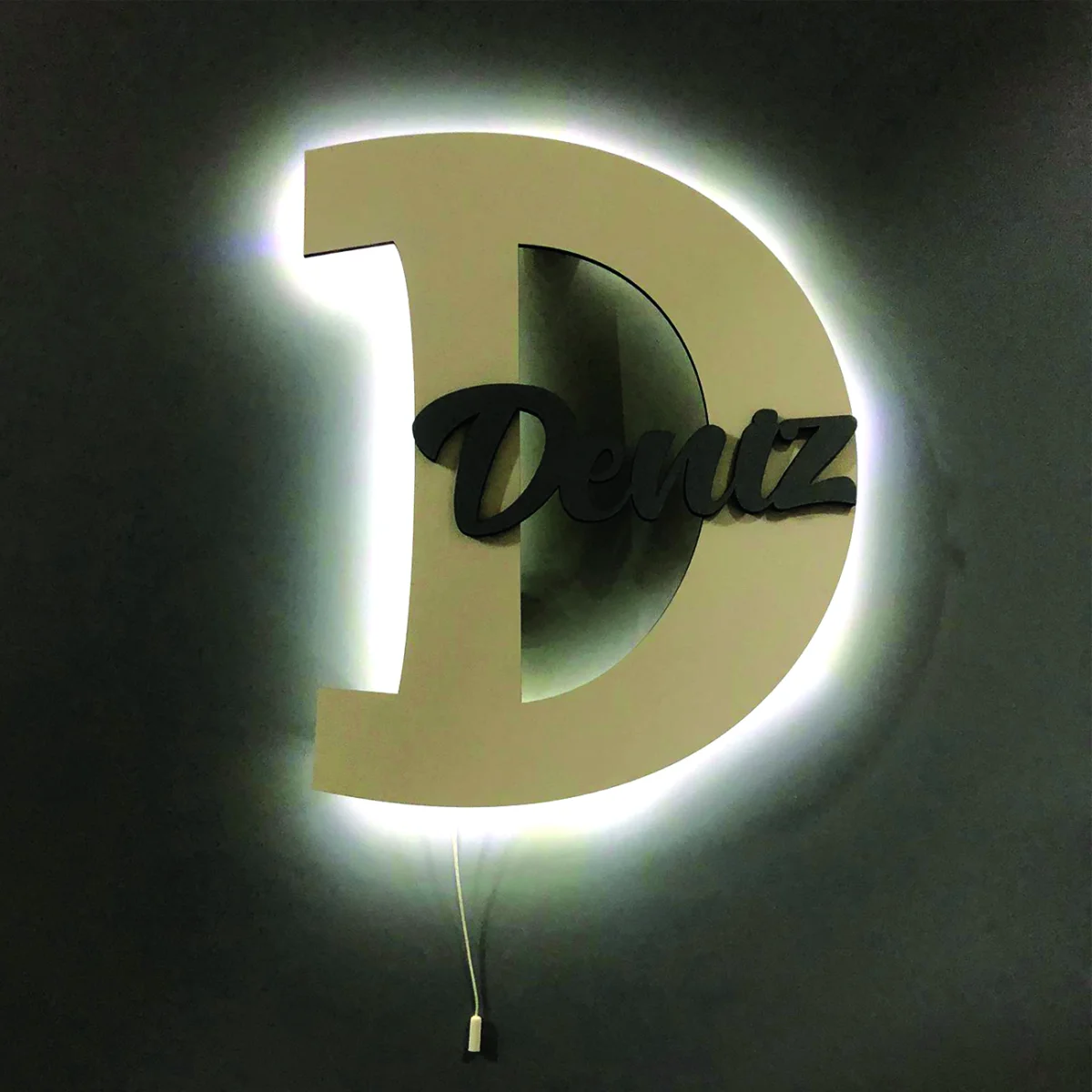 Harf isimlik aydınlatma:Büyük baş harf: Yükseklik: 38 cm / genişlik baş harfin karakterine göre değişiklik gösterebilir.Küçük isim: Yükseklik yaklaşık 8 cm / genişlik yaklaşık 23 cmLütfen isim yazdırmak istiyorum butonunu seçin ve yazdırmak istediğiniz ismi bize gönderin. Örneğin yazdırmak istediğiniz isim: Aslan ise, A büyük harfli aydınlatma üstünde Aslan ismi yazacaktır.