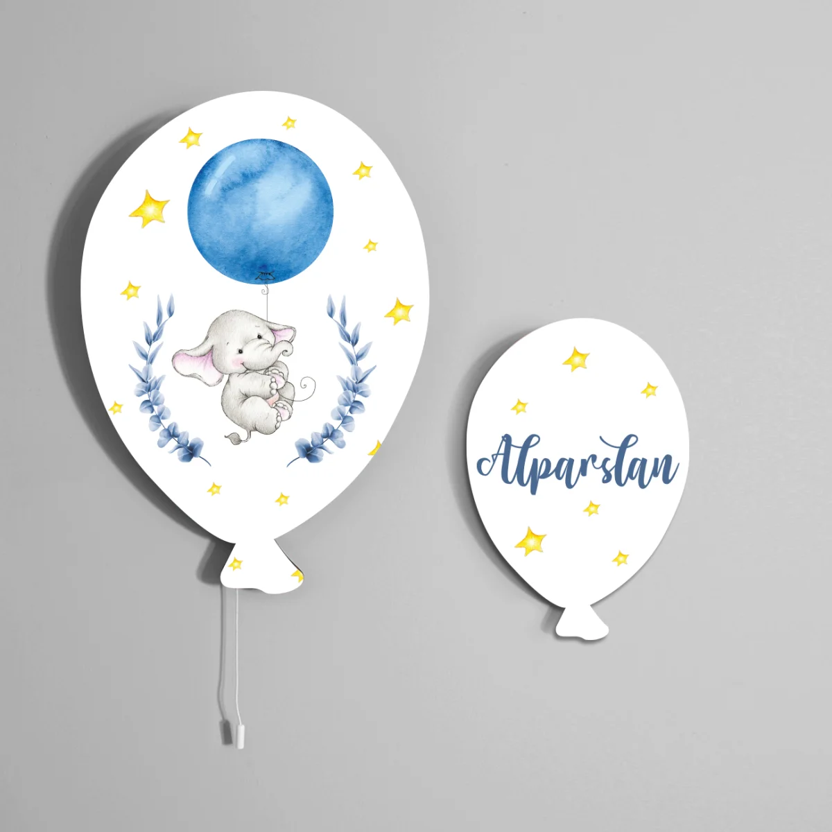 Fil temalı Balon Avize. Beyaz baskılı. Bebek odası için özel tasarım.