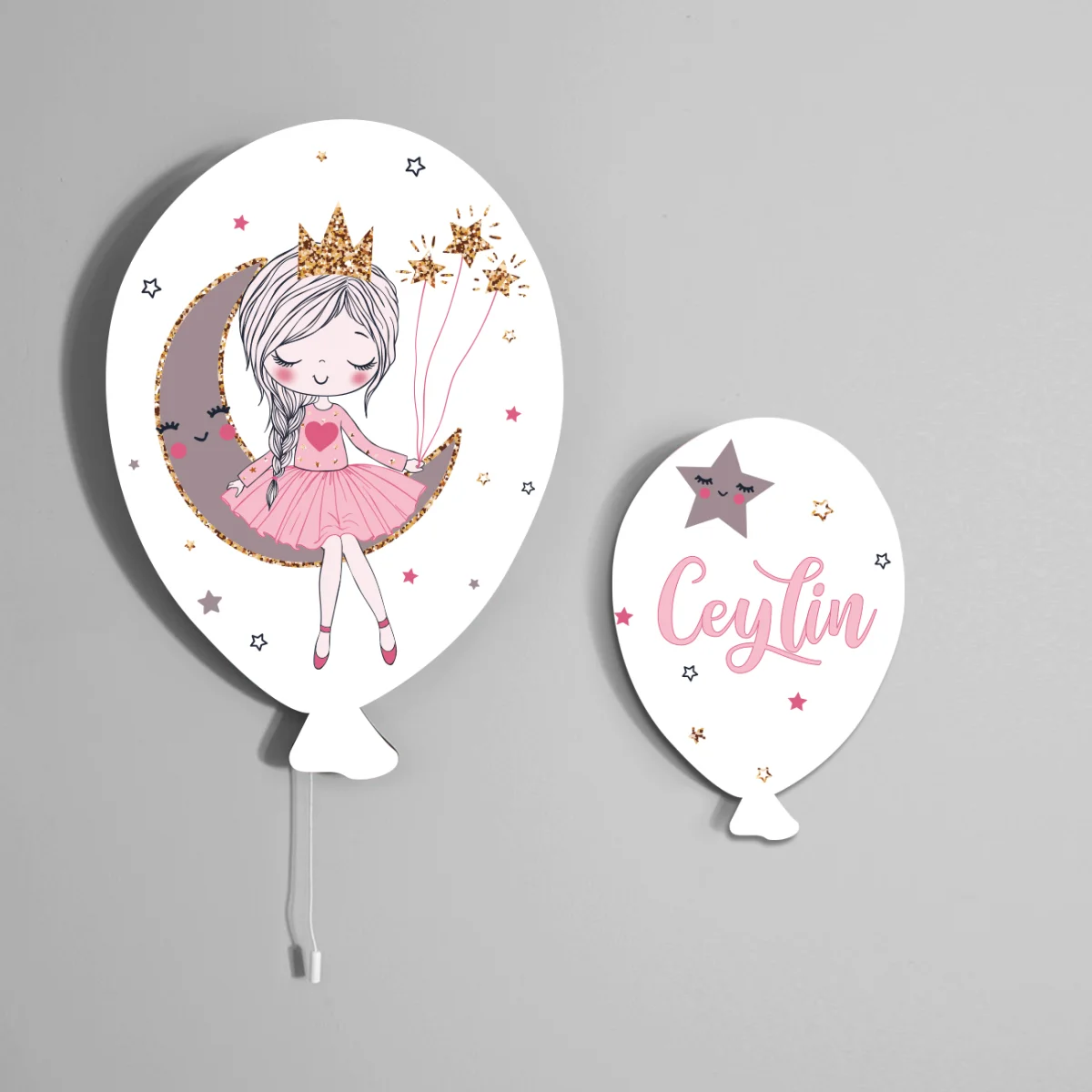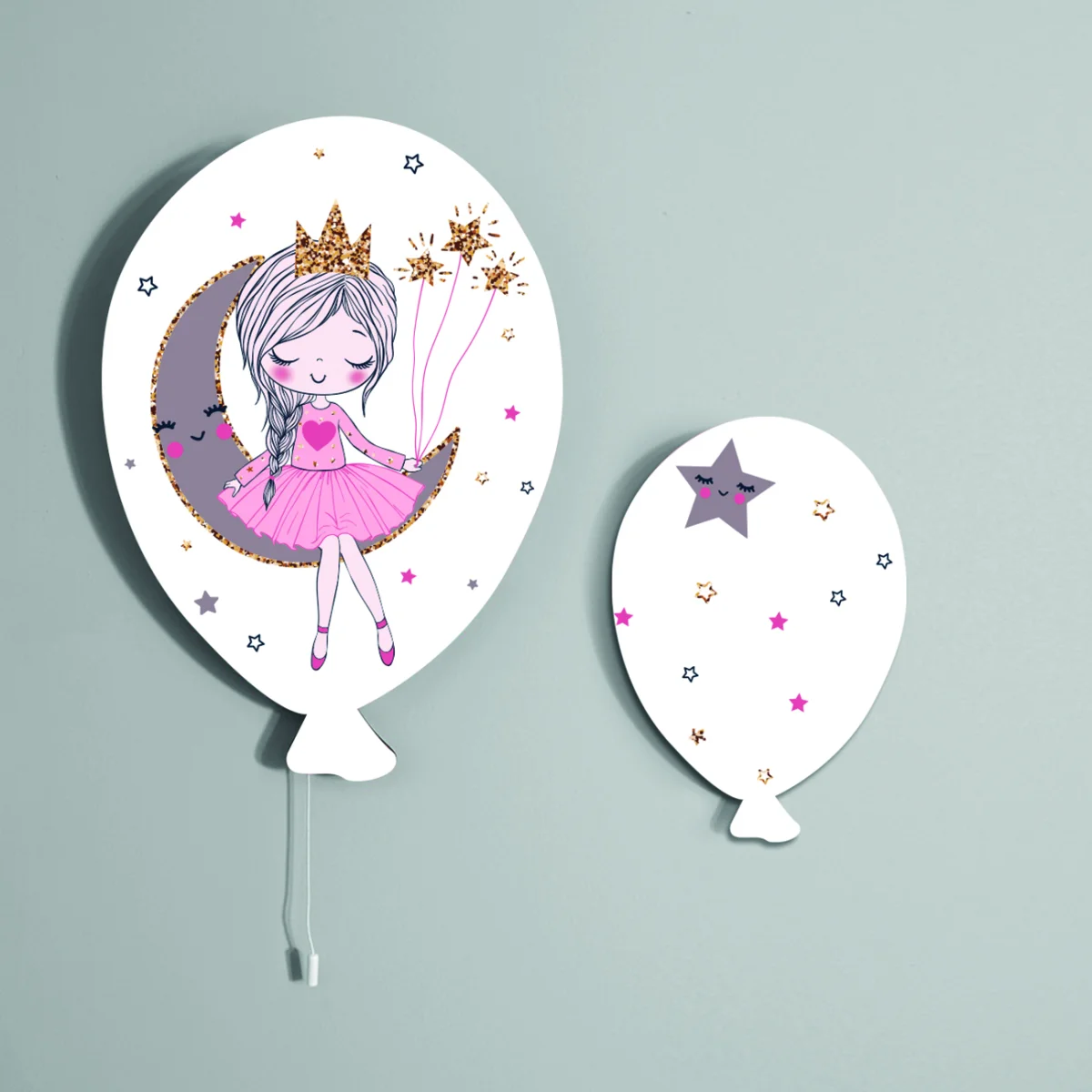 Rüya temalı kız temalı Balon Avize. Beyaz baskılı. Kız bebek odası için özel tasarım.