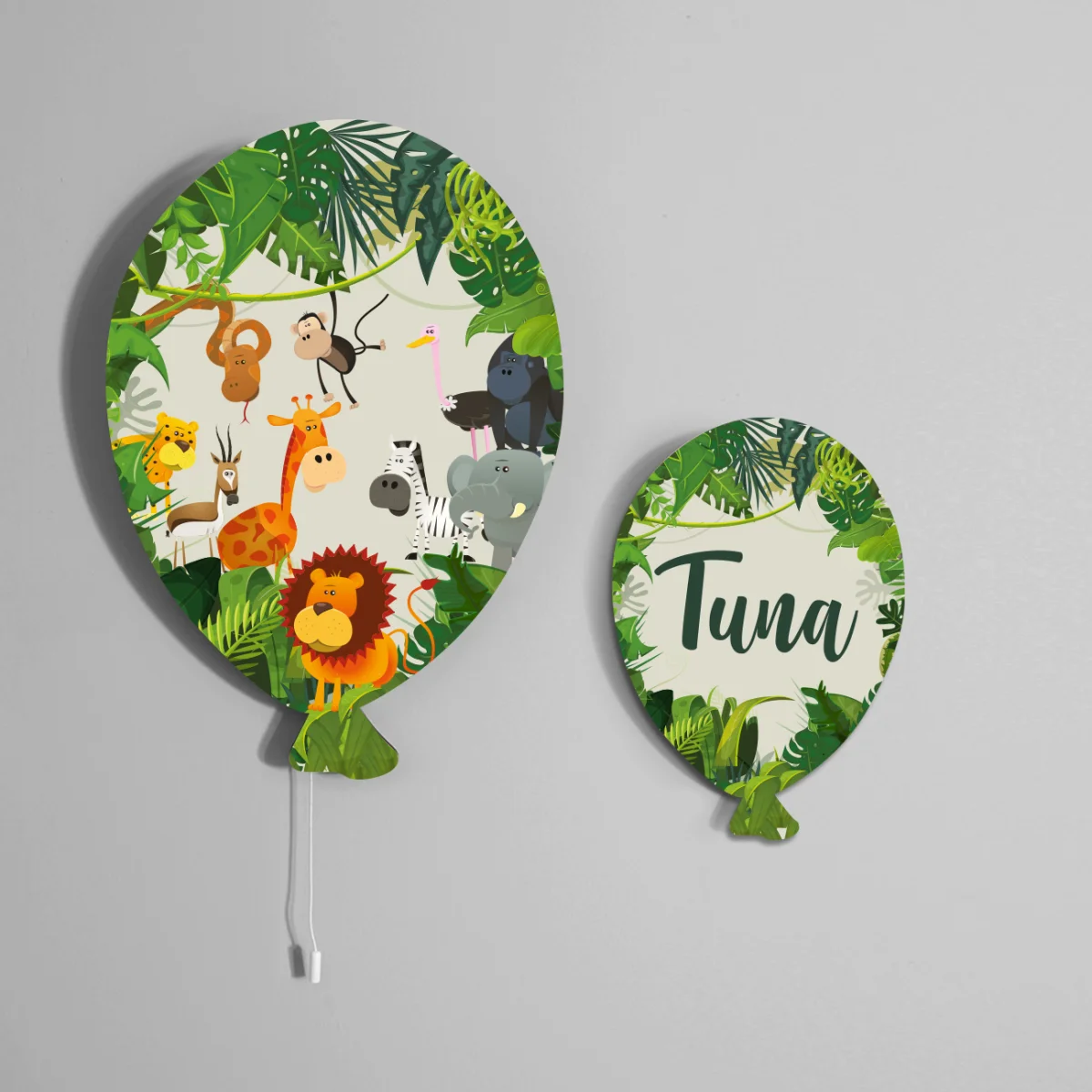 Orman Hayvanları temalı Balon Avize. Açık Gri baskılı. Bebek odası için özel tasarım.