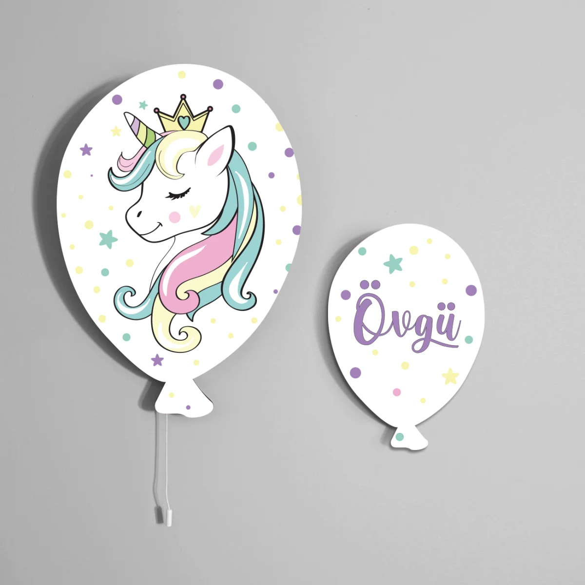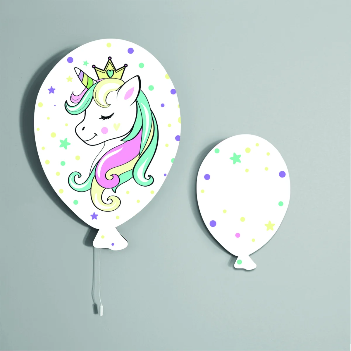 Unicorn temalı Balon Avize. Beyaz baskılı. Kız bebek odası için özel tasarım.