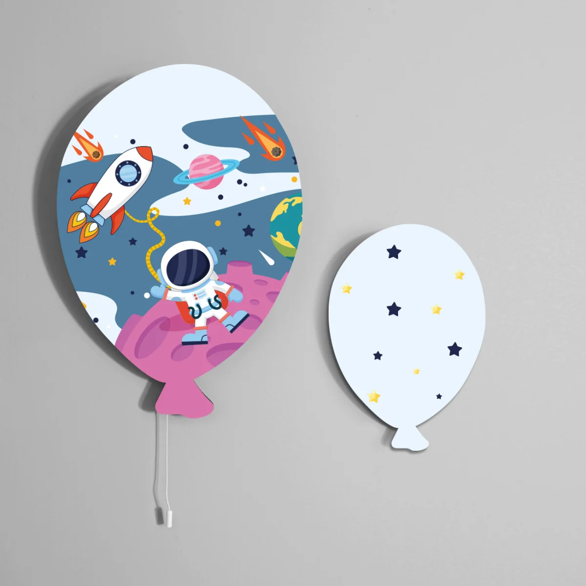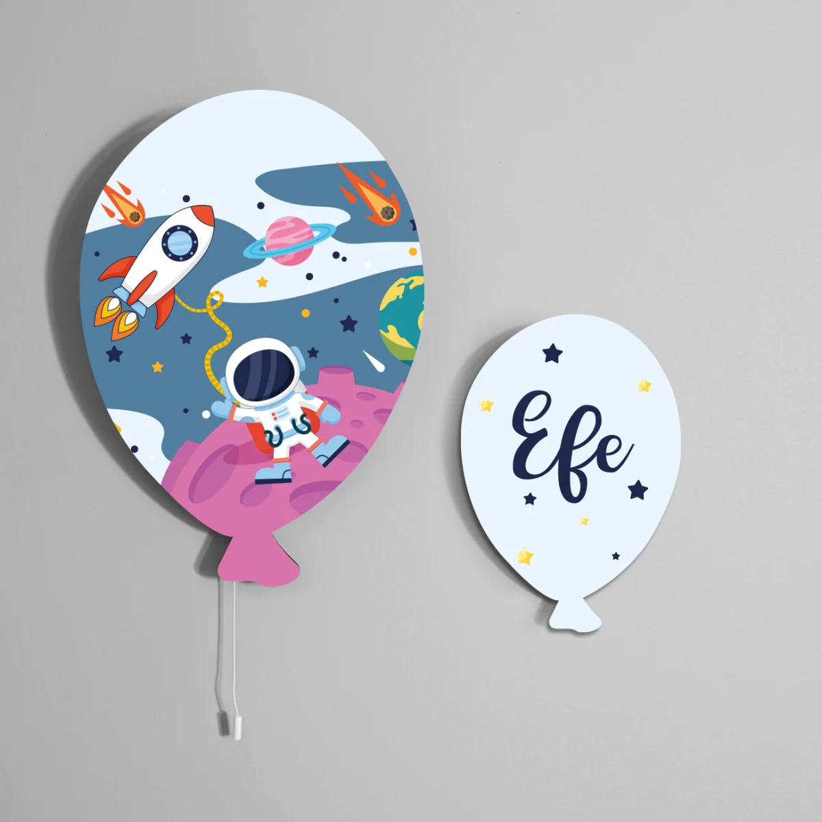 Uzay temalı Balon Avize. Açık Mavi baskılı. Bebek odası için özel tasarım.