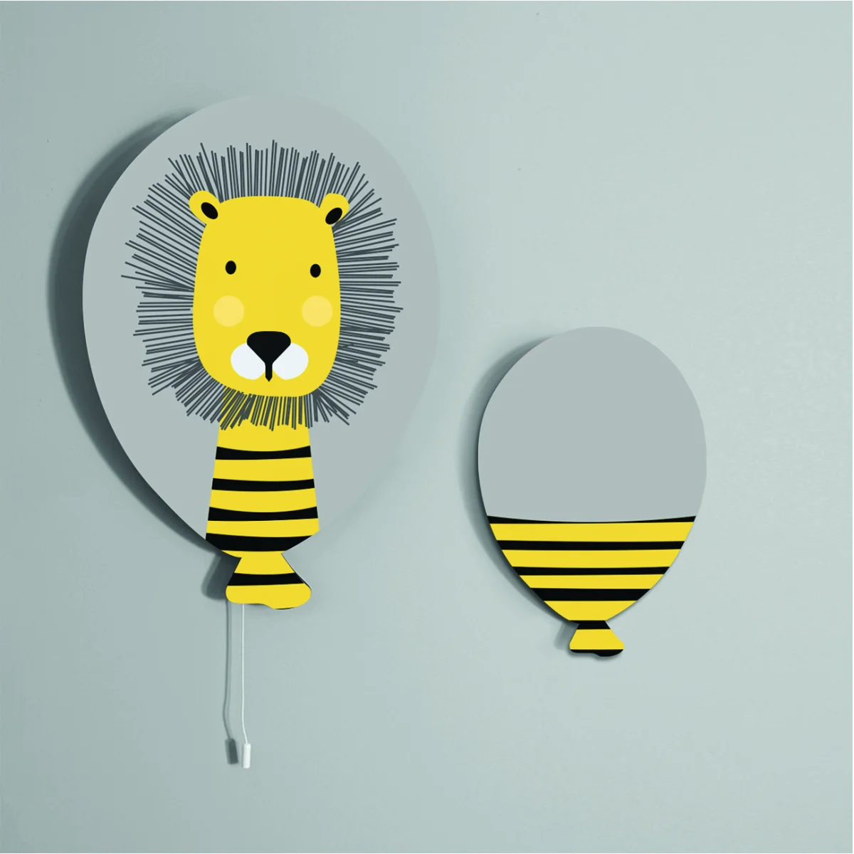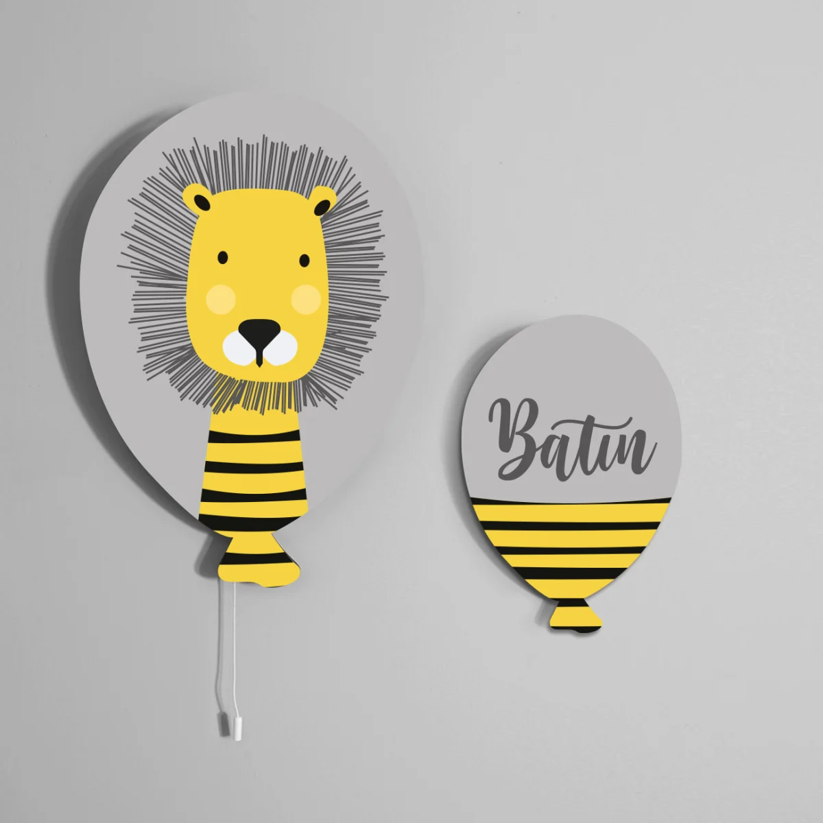 Aslan temalı Balon Avize. Gri baskılı. Bebek odası için özel tasarım.