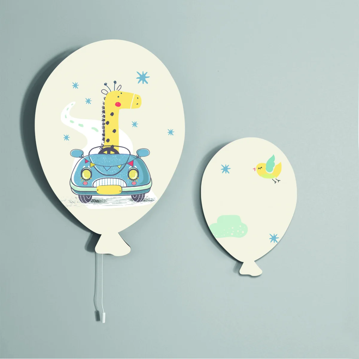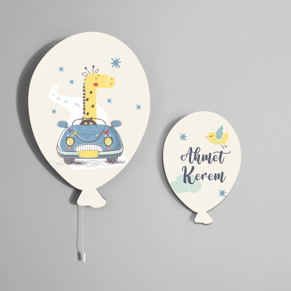 Zürafa ve araba temalı Balon Avize. Krem baskılı. Bebek odası için özel tasarım.