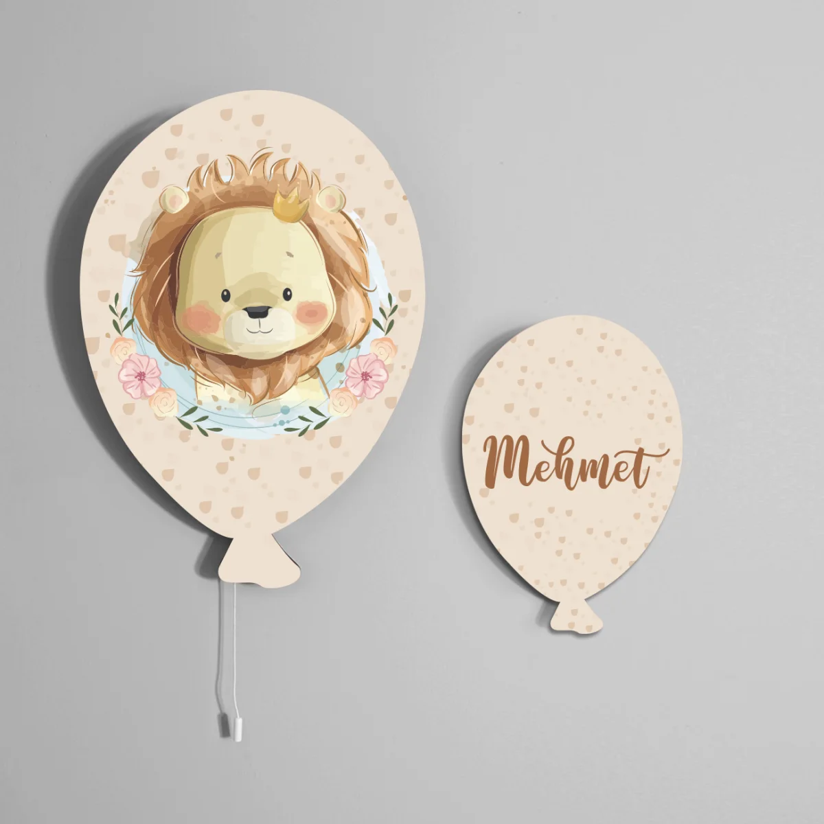 Orman Hayvanları temalı Balon Avize. Bej baskılı. Bebek odası için özel tasarım.
