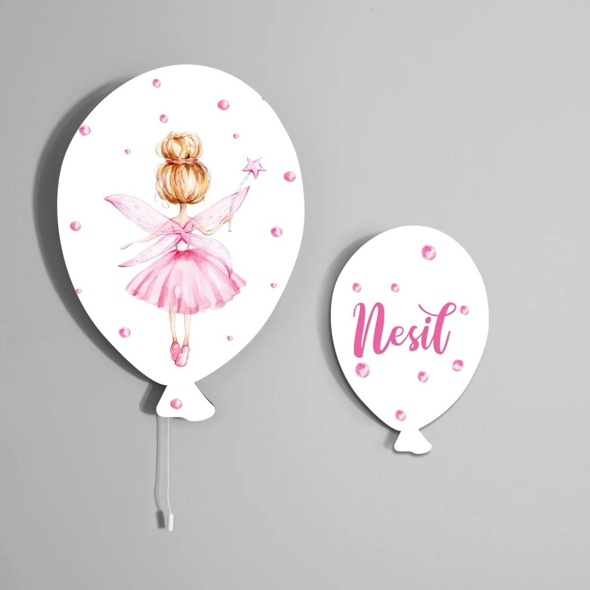 Peri Kız temalı Balon Avize. Beyaz baskılı. Kız bebek odası için özel tasarım.