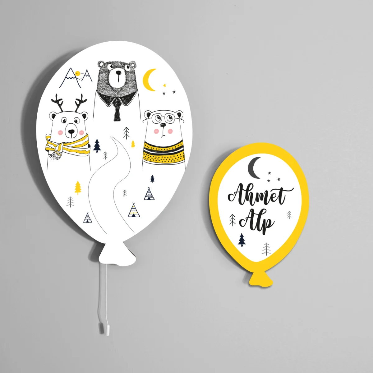 Ayılar temalı Balon Avize. Beyaz baskılı. Bebek odası için özel tasarım.