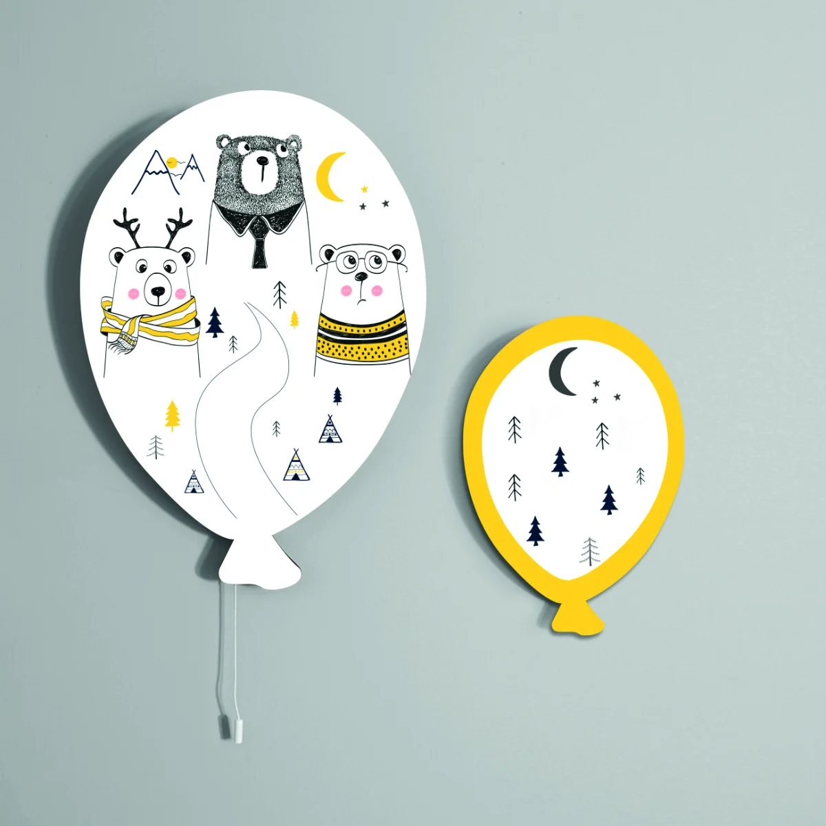 Ayılar Balon Avize | Beyaz Dağlar, ağaçlar Desenli