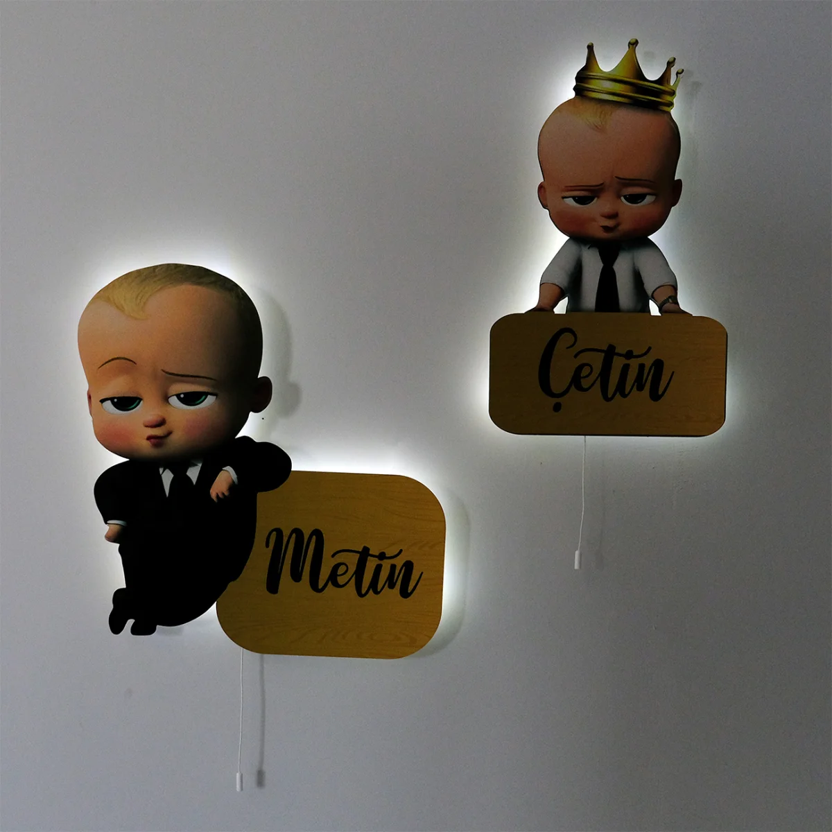 Aydınlatma modelimizle çocuk odalarımız çok şık.\r\rSiz de çocuğunuzun hayal gücüne katkıda bulunun\r\rE1 Avrupa standartlarında 1.sınıf ahşaptan üretilmiştir.\r\r9v pil ile çalışmaktadır\r\rSağlığa zararlı madde içermemektedir.\r\rŞerit LED döşelidir.\rPatron Bebek 1\rYükseklik: 36 cm\rGenişlik: 38 cm \r Patron Bebek 2\rYükseklik: 38 cm\rGenişlik: 23 cm