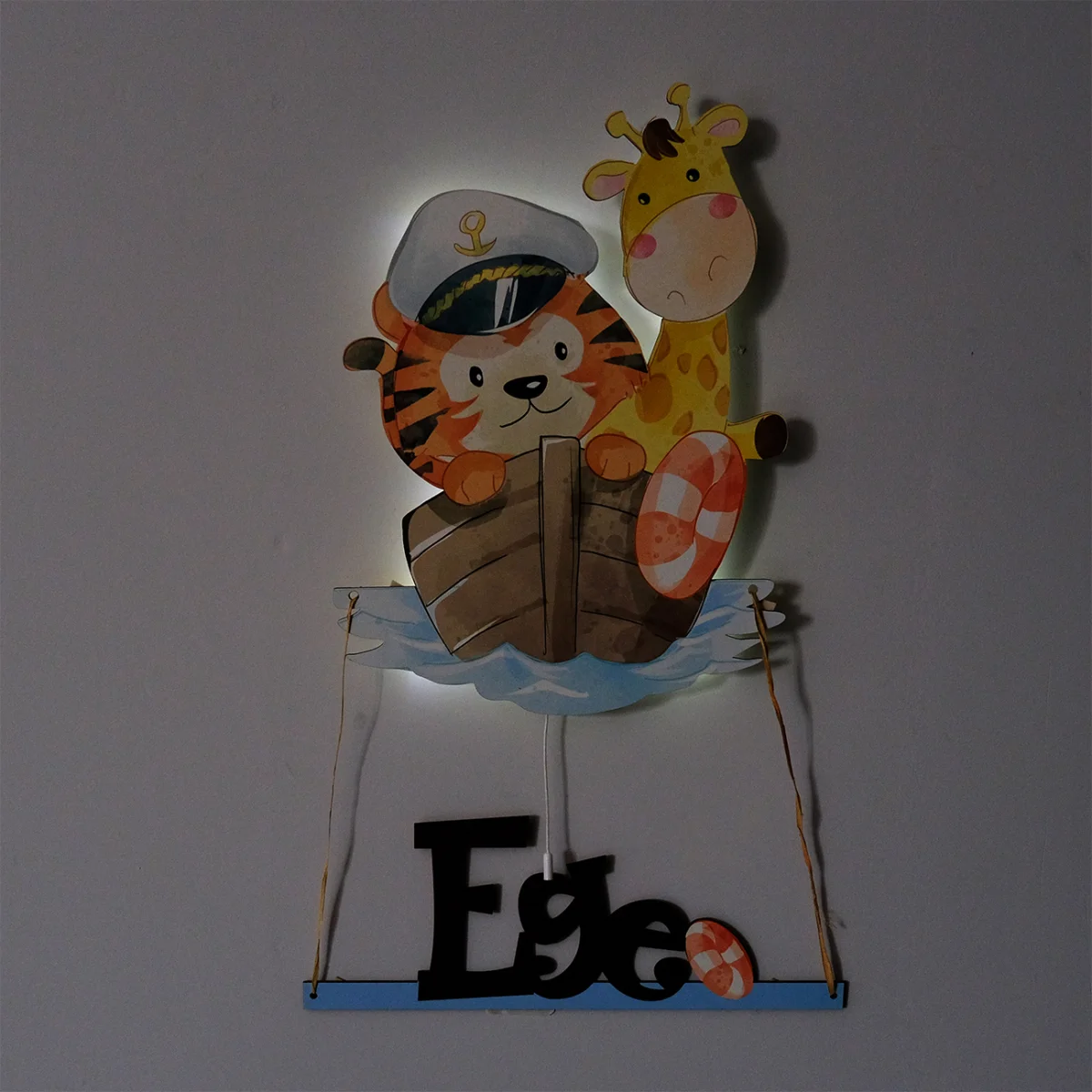 Aydınlatma modelimizle çocuk odalarımız çok şık.Siz de çocuğunuzun hayal gücüne katkıda bulununE1 Avrupa standartlarında 1.sınıf ahşaptan üretilmiştir.9v pil ile çalışmaktadırSağlığa zararlı madde içermemektedir.Şerit LED döşelidir.Gemici Hayvanlar Yükseklik: 42 cmGenişlik: 43 cm