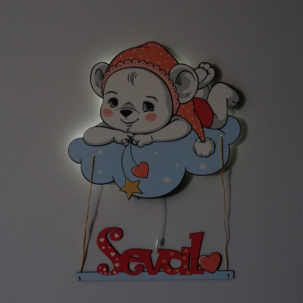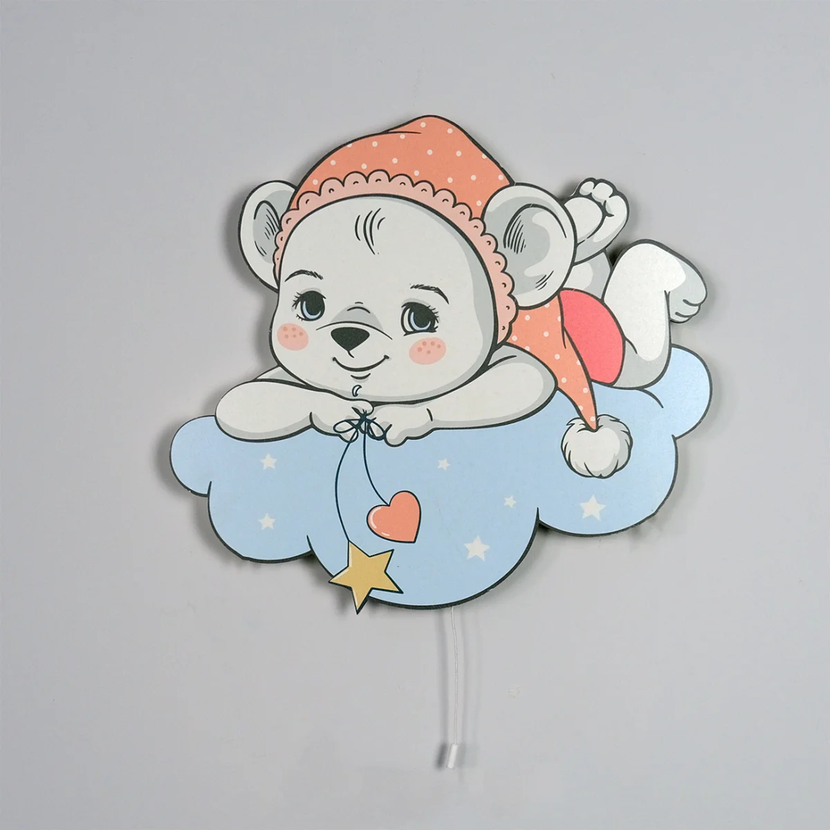Aydınlatma modelimizle çocuk odalarımız çok şık.Siz de çocuğunuzun hayal gücüne katkıda bulununE1 Avrupa standartlarında 1.sınıf ahşaptan üretilmiştir.9v pil ile çalışmaktadırSağlığa zararlı madde içermemektedir.Şerit LED döşelidir.Bulutta Uyuyan Ayıcık Yükseklik: 34 cmGenişlik: 38 cm