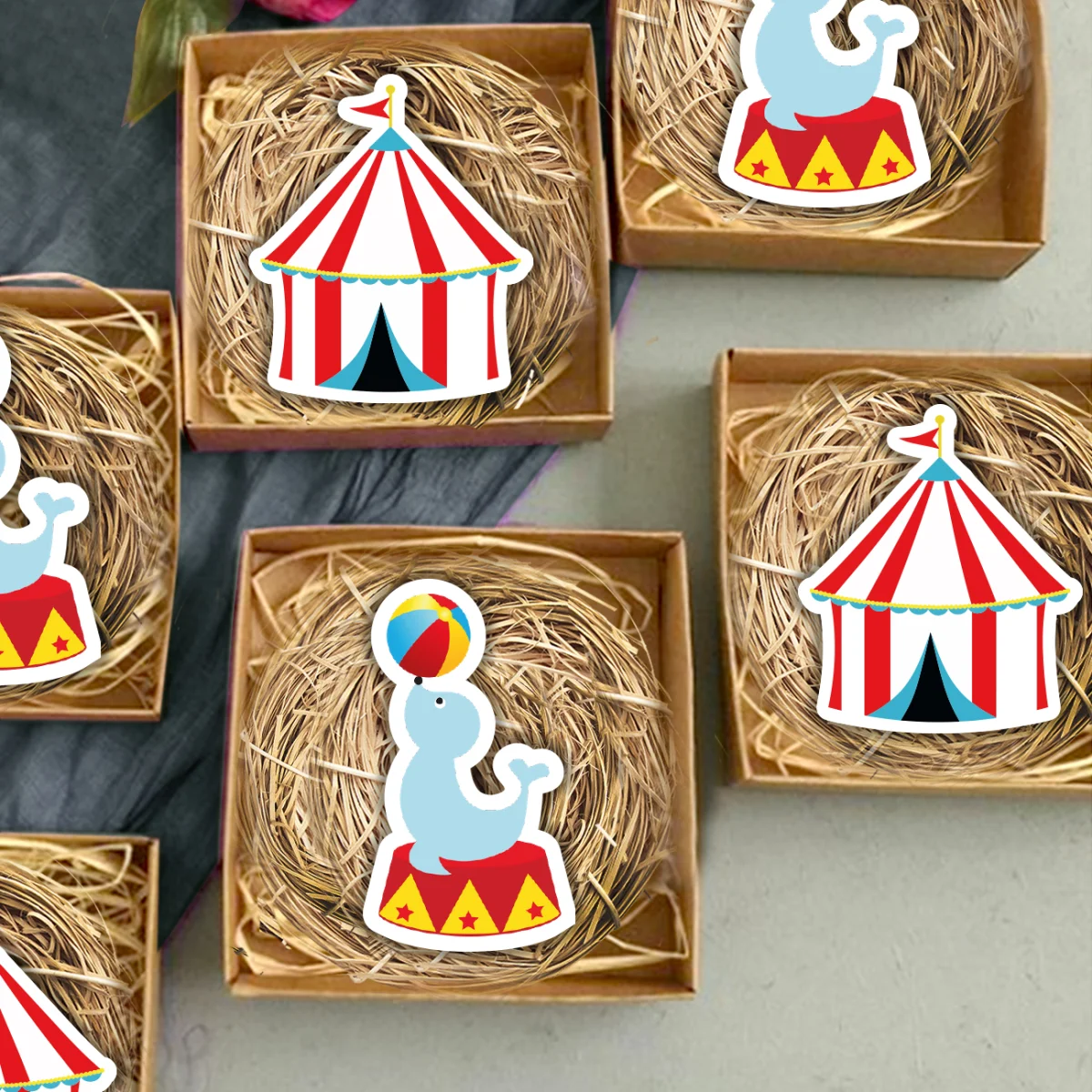 Sirk temalı Bebek Magneti. Kırmızı, Açık Mavi baskılı. Bebek odası için özel tasarım.