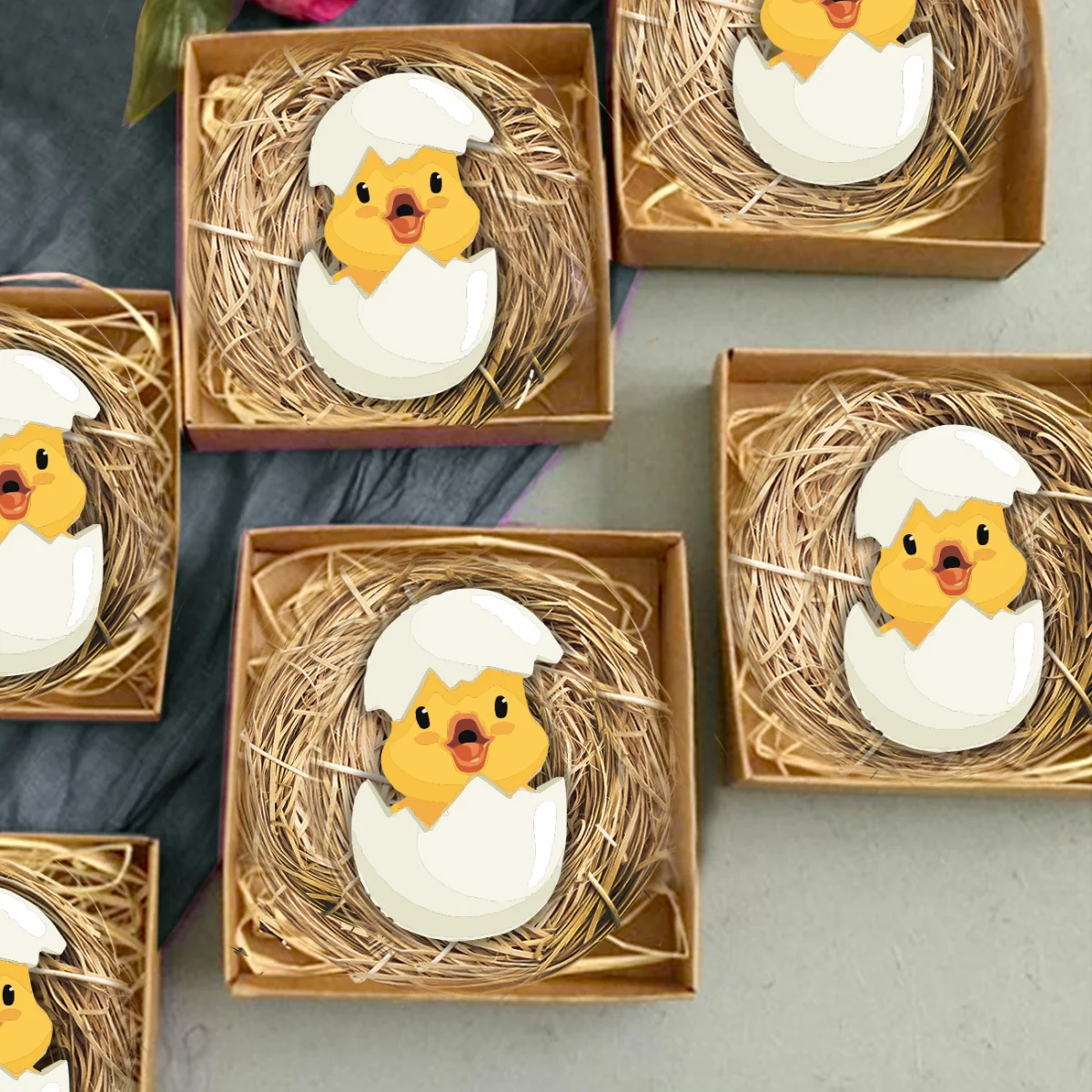 Civciv Bebek Magneti | Sarı Kırık yumurta, saman yuva Desenli